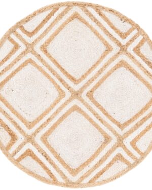 Handwoven Natural Jute Area Rug with Geometric Pattern | Round Eco-Friendly Floor Carpet